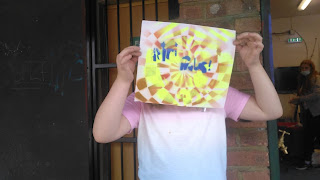 Using letterforms and background the young people worked on their designs before transfering them to art paper and T shirts.
